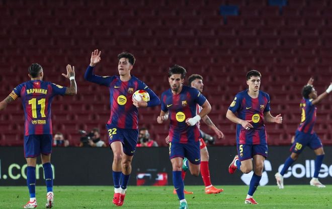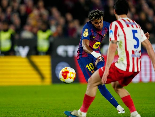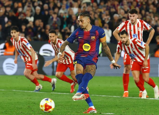 比赛开始后巴萨攻势如潮,费尔明、拉菲尼亚、费兰-托雷斯和亚马尔等人接连获得机会,但射门都没有打进。直到第29分钟,巴萨才取得进球。亚马尔助攻贝尔纳尔进球打破僵局。随后,佩德里制造点球机会。拉菲尼亚主罚点球命中扩大比分。下半场巴萨继续围攻马竞。坎塞洛助攻贝尔纳尔再进一球。但无奈巴萨无法再进一球。最终的比分定格为3-0,巴萨功亏一篑,还是被淘汰了。